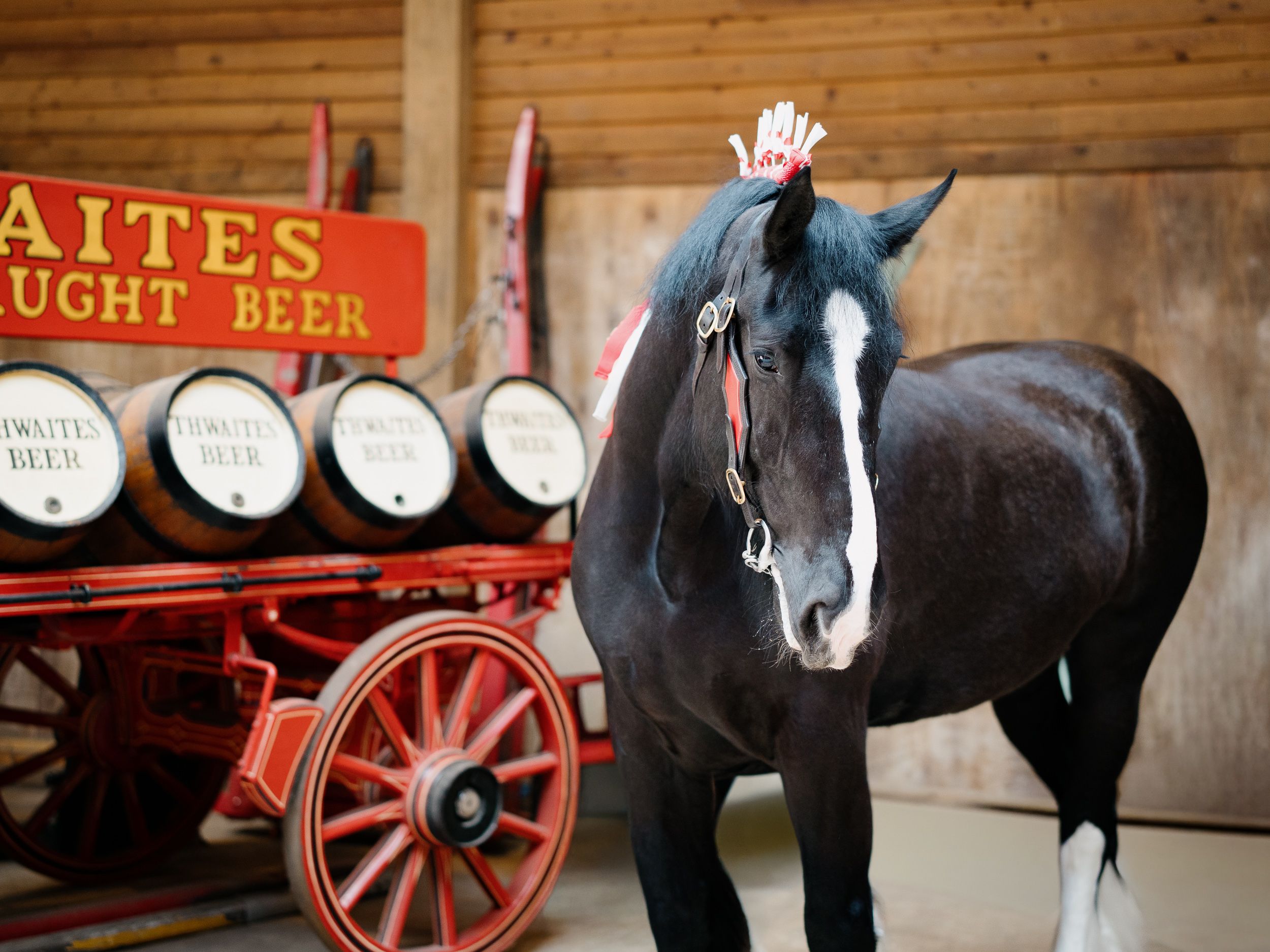 The oldest of our gentle giants, 10-year-old Drummer sets a fine example for his younger stablemates. He’s been with us since he was two years old, moving with us from the Star Brewery in Blackburn to our new home in Mellor in 2018. He loves meeting customers on visits to our pubs, inns and hotels – especially if they slip him a cheeky apple. Pulling Santa’s sleigh at Christmas markets and fairs is one of his favourite jobs.